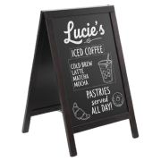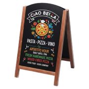 Avec le chevalet en ardoise, vous misez sur un produit au design vintage : cadre en bois aux angles carrés, tableau noir en ardoise, écriture à la craie blanche ou de couleur. Ce panneau stop-trottoir en ardoise avec cadre en bois vous garantit un affichage performant. Ce type de chevalet est très utilisé dans le domaine de la restauration pour exposer un menu qui change régulièrement. En effet, le panneau en ardoise et la craie permettent d’écrire et d’effacer un message en toute simplicité. Les professionnels adoptent ce panneau stop trottoir pour un usage en intérieur comme en extérieur en raison de sa praticité et de son style élégant. Pas d’affiches à imprimer avec les chevalets en ardoise, vous disposez d’un tableau noir à deux faces pour communiquer efficacement auprès de chaque client. Chaque face du panneau ardoise peut être personnalisée à votre guise avec une craie blanche ou de couleur et véhiculer votre message auprès du plus grand nombre. Avec notre stock de chevalets en bois à personnaliser du format de votre choix à des prix attractifs, vous bénéficiez d'un produit d’affichage qui optimisera la visibilité de votre enseigne. Pour un menu sur pied sobre et impactant, misez sur le chevalet ardoise et bois Personaliz !